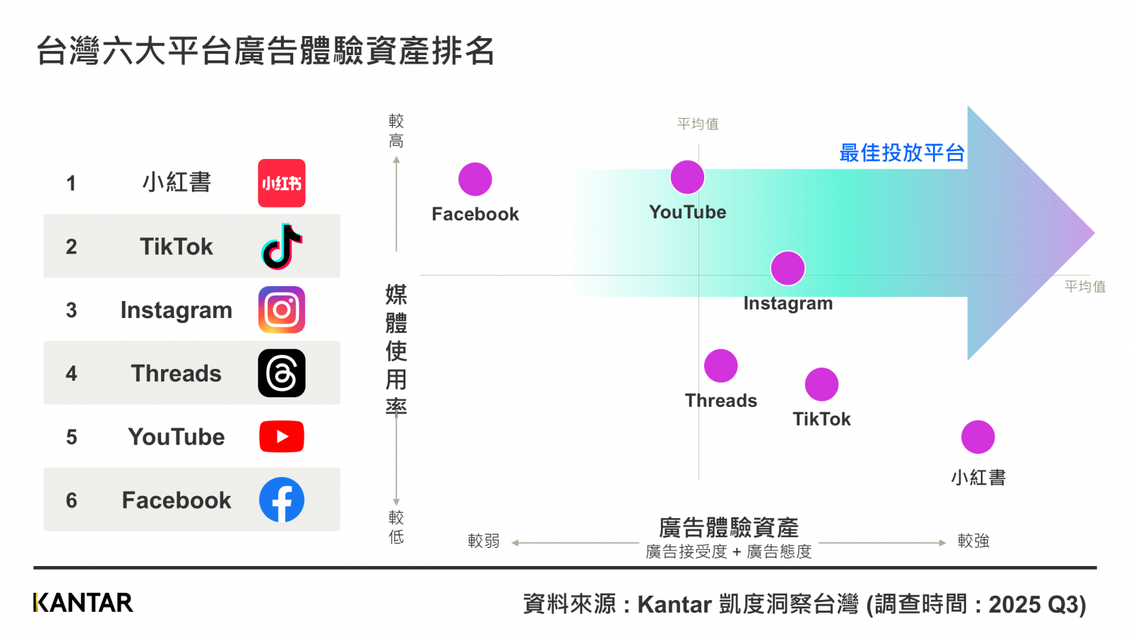 這也是 Kantar 建立「廣告體驗資產(Ad Equity)」指標的原因 - 衡量平台能否讓廣告被自然、愉快且有效地接收。這些態度差異,決定了平台是否能替品牌建立真正的資產。