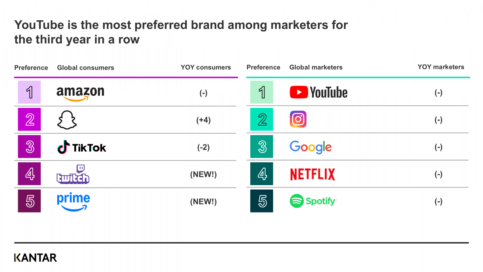 Snapchat’s ads are seen as fun and entertaining, and consumers feel like they’re less intrusive than they were in 2024. Meanwhile consumers praised TikTok ads for being particularly attention-grabbing, fun and entertaining. Marketers’ preferred ad brands are YouTube, Instagram, Google, Netflix and Spotify – the same ranking as 2024.