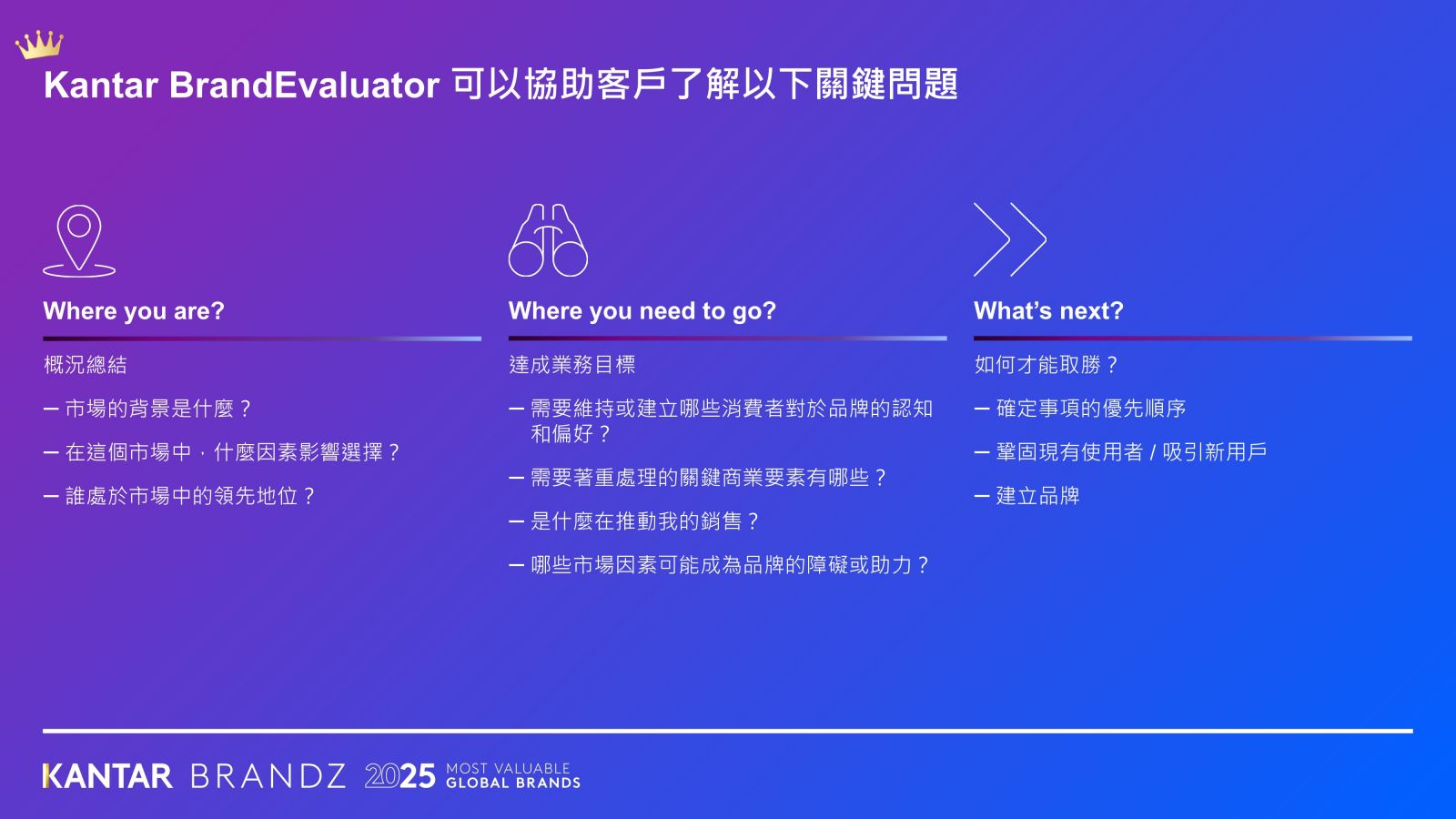 如有問題請與凱度洞察台灣聯繫,洽詢 BrandEvaluator 品牌建設工具、Kantar Marketplace 凱度一站式雲端洞察平台 品牌評估專業解決方案。