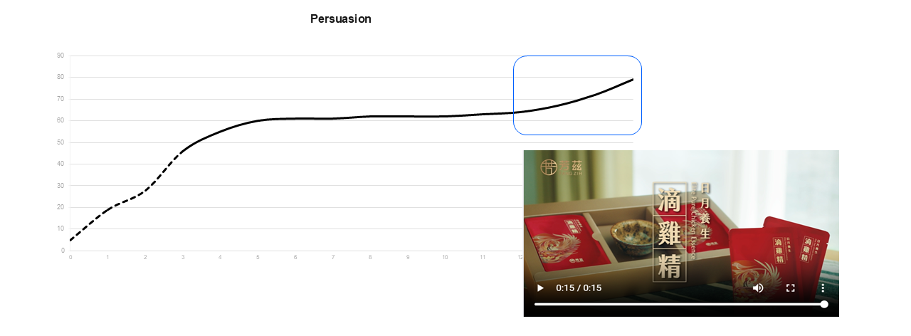 為了精準優化這支芳兹滴雞精的影音廣告,SyCreation團隊希望能科學化地評估素材效能,了解廣告在市場上的整體表現潛力、與同品類比較的相對位置,再據此進行優化。